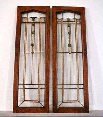 A PAIR OF PRAIRIE STYLE LEADED GLASS WINDOWS