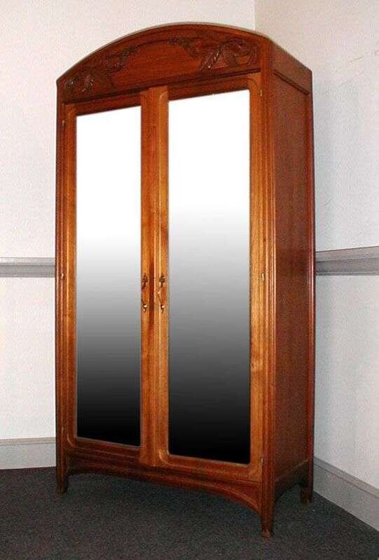 AN ART NOUVEAU CARVED MAHOGANY ARMOIRE
