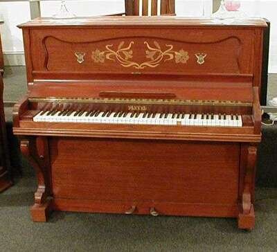 AN ART NOUVEAU INLAID MAHOGANY UPRIGHT PIANO