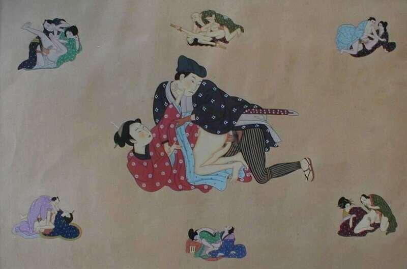 Gouache Drawings. Erotic Japanese Shunga-style subjects. Folio sheets. Modern drawings.