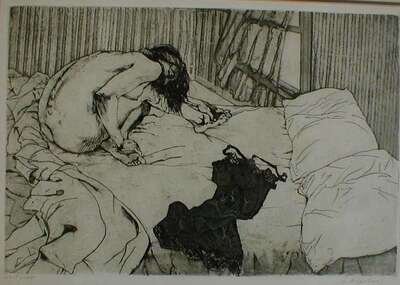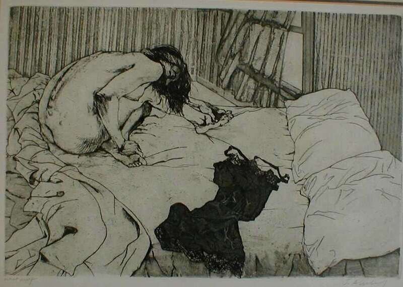 Aquatint Etching. Abeles, Sigmund. "The Black Slip." 1967. Proof. 11 3/4 x 17 5/8 inches (298 x 447 mm), margins. Signed in pencil by Abeles, lower margin.