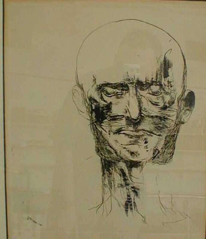 Etchings. Baskin, Leonard: "Menzel." Proof. 17 5/8 x 15 1/16 inches (448 x 383 mm), margins. Titled & signed in pencil by Baskin, lower margin. Generally clean. Framed. * "Lucas van Leyden." 43/90. 16 1/4 x 21 3/4 inches (413 x 552 mm), margins. Signed, titled & numbered in pencil by Baskin. Some foxing. Framed.