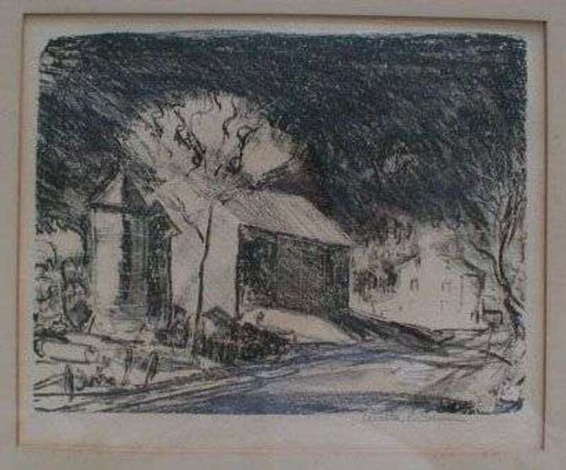 Lithograph. Baum, Walter. Bucks County, Pennsylvania Barn. 7 1/4 x 9 1/4 inches (184 x 235 mm), margins. Signed in pencil, lower margin. Framed.