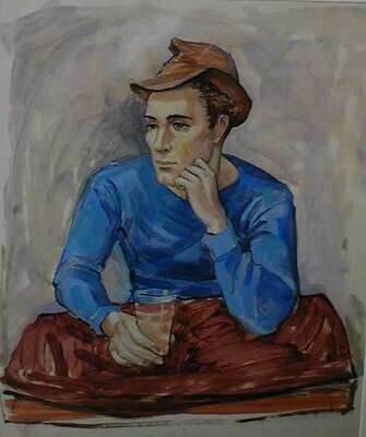 Gouache Drawing. Etting, Emlen. Untitled portrait of a man in a hat. 21 x 18 inches (533 x 457 mm). Framed.