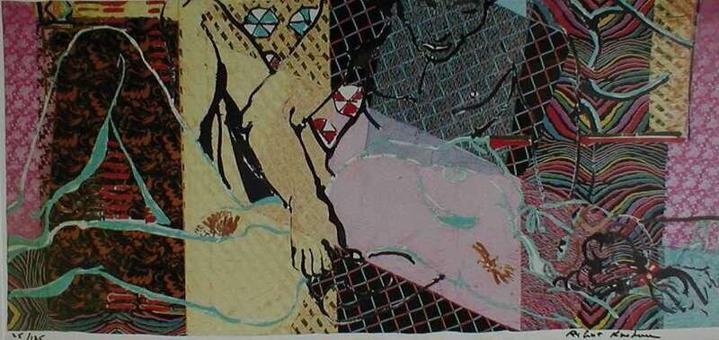 Color Offset Lithograph. Kushner, Robert. "Tryst." 1987. 25/125. 11 x 24 3/4 inches (279 x 628 mm). Numbered & signed in ink by Kushner, lower margin. Framed.