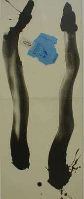 Lithograph with Collage. Motherwell, Robert. Untitled abstract composition. 1974. 9 3/4 x 24 inches (247 x 610 mm). 1/3975 on Rives B. F. K. paper. Framed.