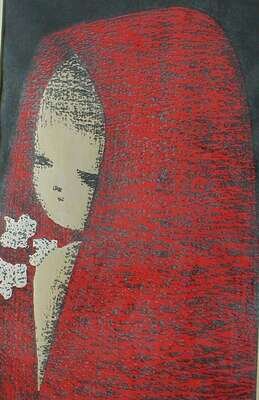 Color Woodblock Prints. Modern Japanese Artists, including: Kawano, Kaoru. Girl in red scarf. 14 3/4 x 9 1/8 inches (375 x 230 mm). Signed in pencil by Kawano, on image.