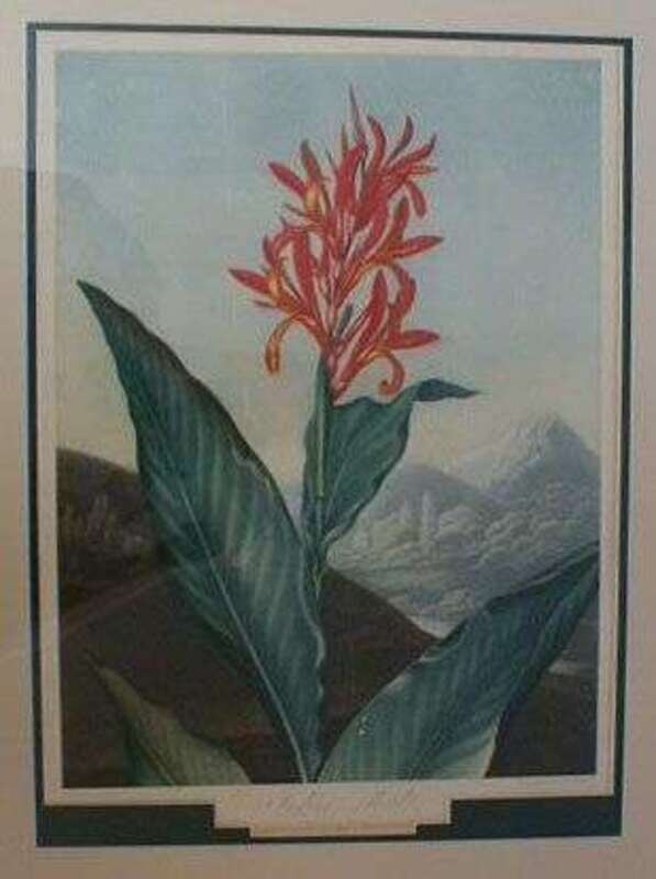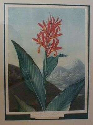 Aquatint & Line Engraving, printed in color & finished by hand. Thornton, Dr. Robert John. "Indian Reed" [from The Temple of Flora, London, 1804]. 16 x 21 1/8 inches (406 x 536 mm), margins. Mat burn at edges of image, margins a little browned, but a well printed & colored, generally clean plate. Second state image on first state paper.