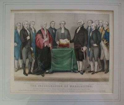 Hand-Colored Lithograph. Currier, N.; Ives, J.M., pub. "The Inauguration of Washington." New York, 1876. Small folio (image size 12 1/2 x 8 3/4 inches, 318 x 222 mm), margins. Clean. Framed.