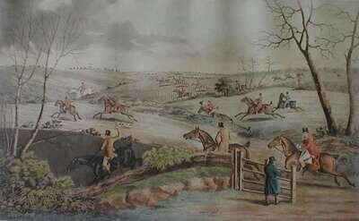 Hand-Colored Aquatint. Sutherland, T., after Alken, R. "Full Cry." London: John Hudson, 1821. 14 3/4 x 23 inches (375 x 584 mm). Trimmed within plate mark & mounted on larger sheet.
