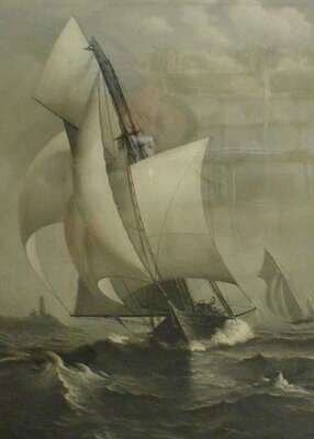 Mezzotint Engraving. Wellstood, W. after Davidson, J.C. "A Winning Yacht." New York, 1885. Approx. 27 x 19 inches (685 x 480 mm). Clean. Framed.