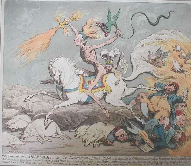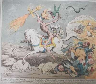 Hand-Colored Engravings. English Caricature prints by James Gillray. Ca. 1795-1815. Folio sheets, trimmed & mounted on larger sheets.