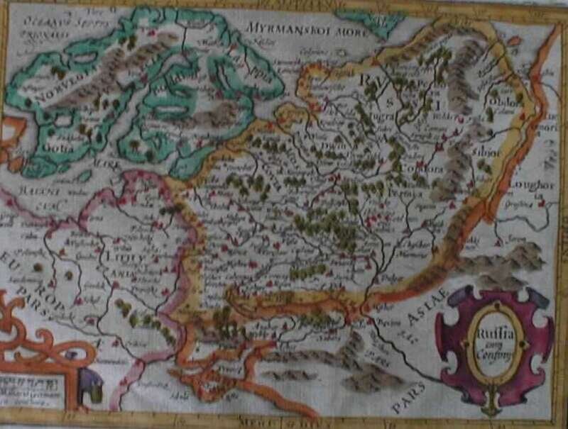 Hand-Colored Engraved Maps. [Small formats]: (Morden, Robert.) "Canaan." [London, ca. 1695]. 5 3/8 x 5 inches (136 x 127 mm) - plate mark, margins with text. Clean. Framed. * "Syrie avec ses Provinces." Ca. 1700. 5 x 6 inches (127 x 152 mm), margins with text. Clean. Framed. * Mercator, G., after. "Russia." Ca. 1635. 5 1/2 x 7 1/4 inches (138 x 184 mm), margins with text.