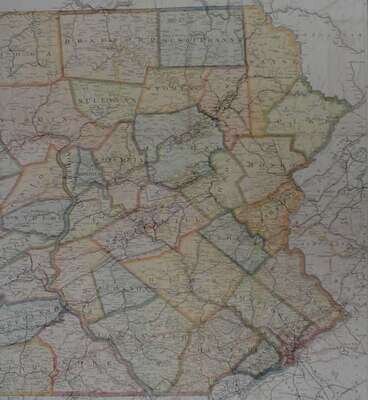 Color Lithographic Map. "Rail Road Map of Pennsylvania." 1898. 56 x 28 inches (1422 x 711 mm), margins, linen-backed. Clean & bright.