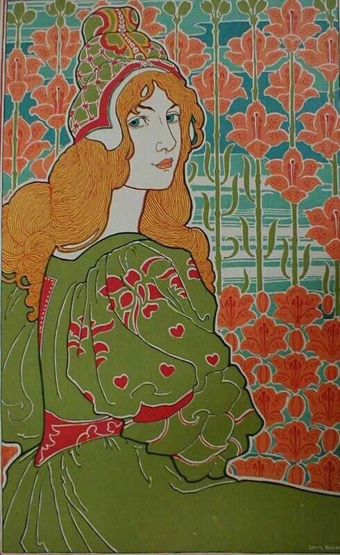 Color Lithograph. Rhead, Louis John. "Jane." [From L'Estampe Moderne, ca. 1897.] 13 3/4 x 8 1/2 inches (350 x 215 mm), full margins. Blind stamp. Clean.