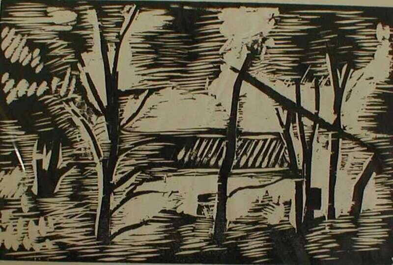 (Modern Art Graphics). Manolo (Martinez Hugue Benigo, Manuel). Untitled woodcut, Post-Impressionist style landscape. Ca. 1920. 4 5/8 x 7 1/16 inches (117 x 179 mm), full margins, signed in ink by Manolo. * Traver Sier, Jacques. "Beaucaire." 1929. Lithograph. 10 x 16 1/2 inches (254 x 420 mm). Titled & signed in pencil by Traver Sier.