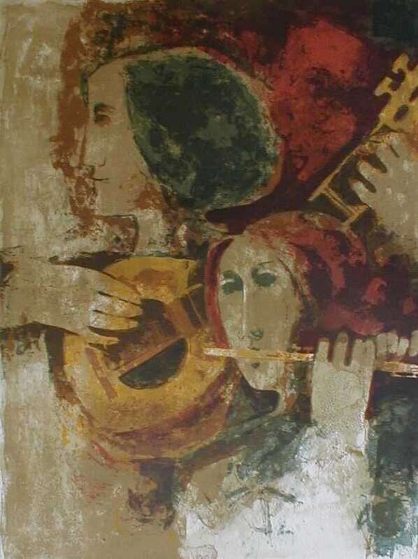Color Lithograph. Alvar, Sunol Munuz Ramos. Musicians. Ca. 1965. 53/275. 21 x 15 3/4 inches (533 x 400 mm), margins. Signed & numbered in pencil by Alvar. Clean. Framed.