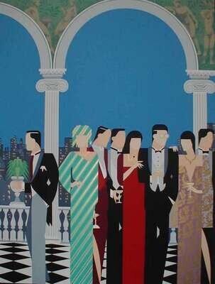 Color Silkscreen. Impiglia, Giancarlo. "The Top of the City." 1981. Proof? 33 x 25 1/2 inches (838 x 647 mm), margins. Signed, titled & inscribed in pencil by Impiglia, lower margin.