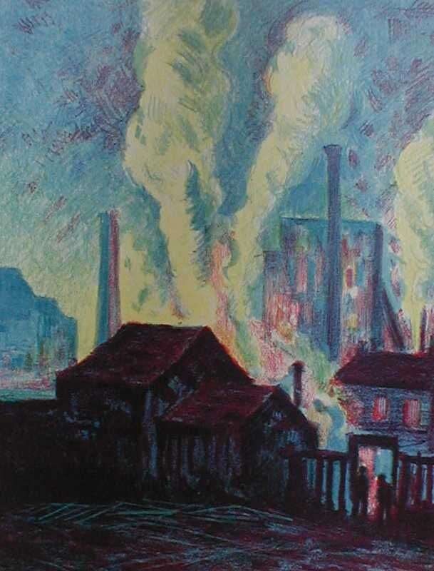 Color Lithograph. Luce, Maximilian. "Hochofen." 1898. 10 1/8 x 7 3/4 inches (257 x 197 mm), full margins. Clean.