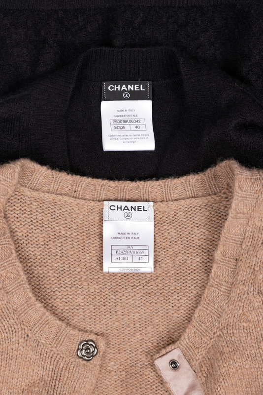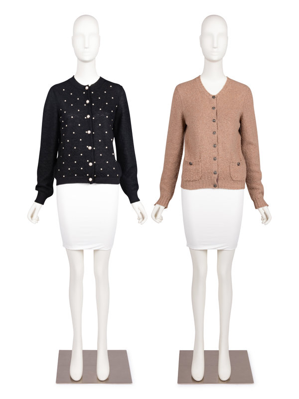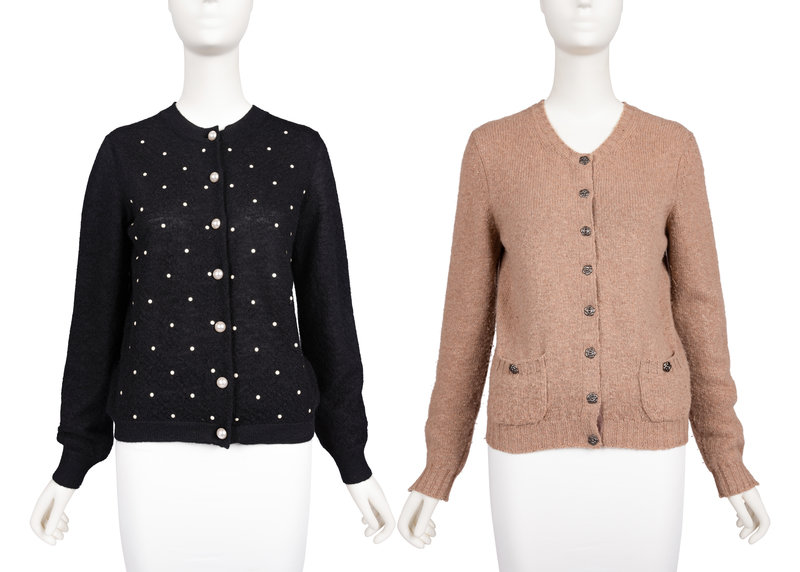 This lot contains two knit Chanel cardigans.