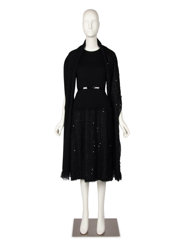 Chanel Black Sequined Dress, Belt, and Scarf, Autumn 2004