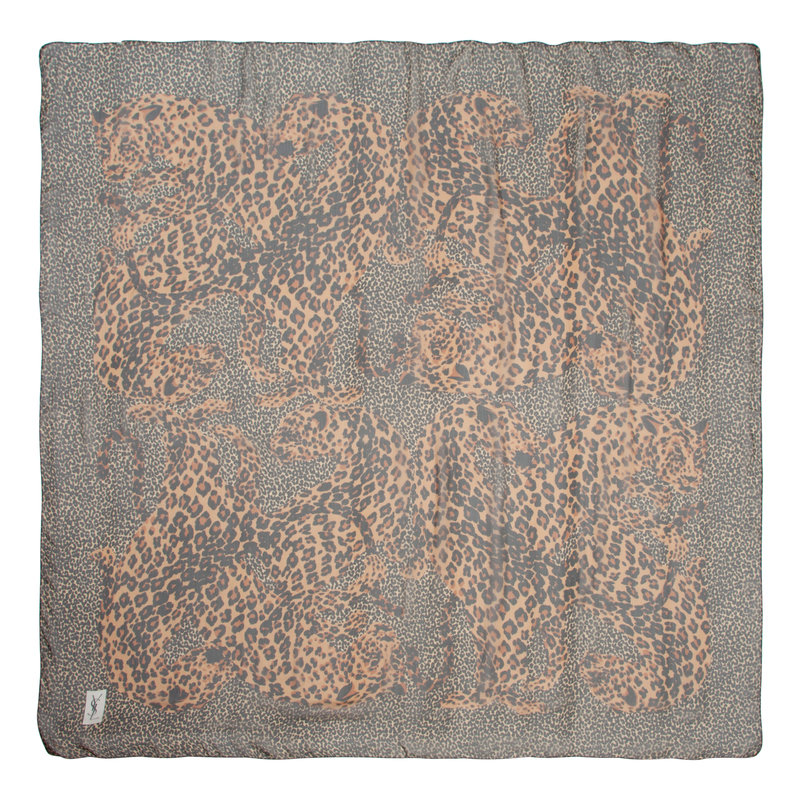 Animal print chiffon scarf with cheetahs within the cheetah print.