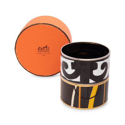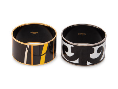 Two Hermès Bracelets - Middle left side - Black and white/ brown