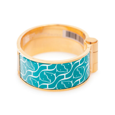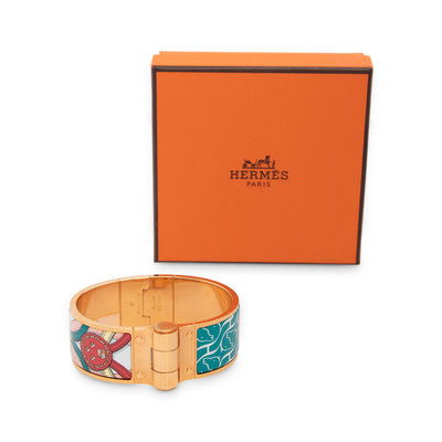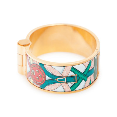 Hermes Cavalcadour à Cheval wide hinged bracelet with gold-tone hardware.