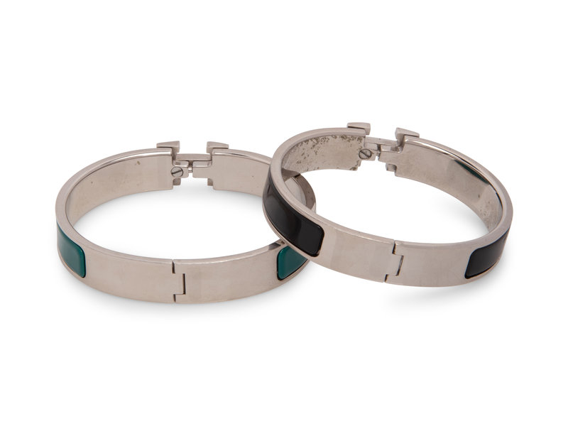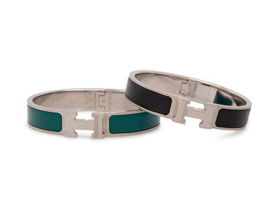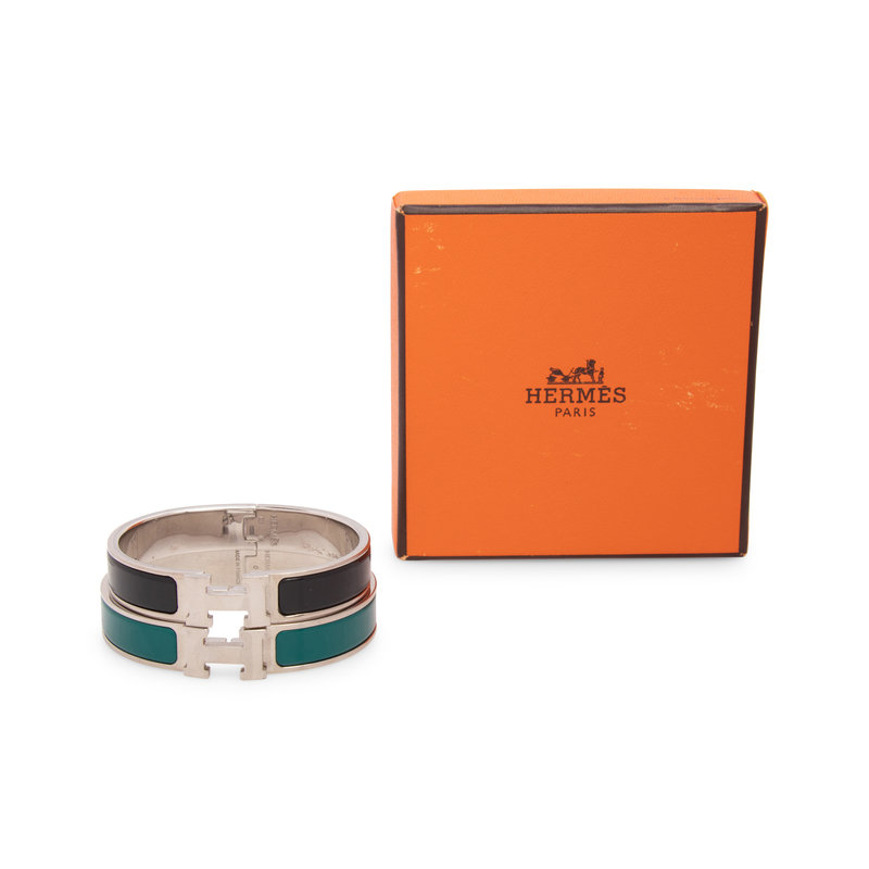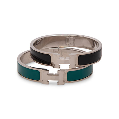 Black enamel "Clic H" bracelet with palladium-plated hardware.