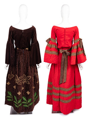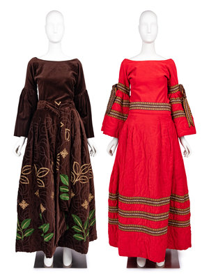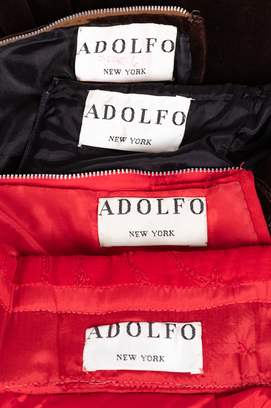This pair of ensembles comes from Adolfo’s second collection for Fall/Winter 1969-70. Aretha Franklin wore an identical version of the red example on the cover of her single ‘Spanish Harlem.’