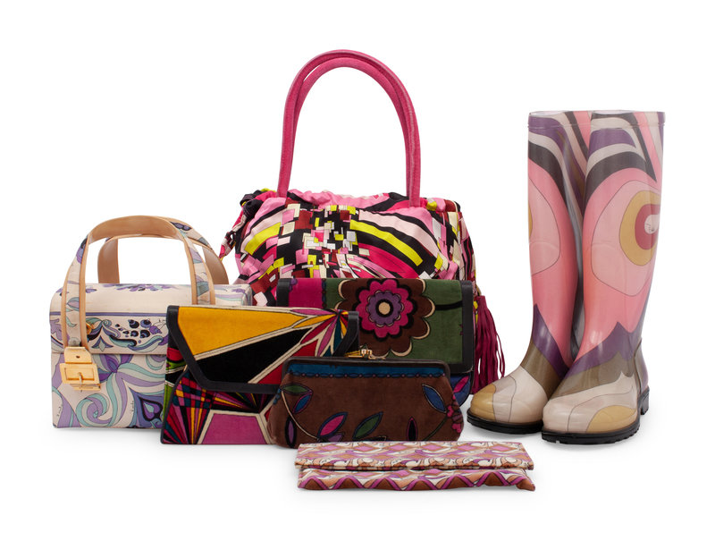 Seven Pucci Accessories: Six Bags and Wallets, One Pair of Boots, 1960-2010s