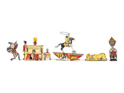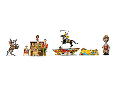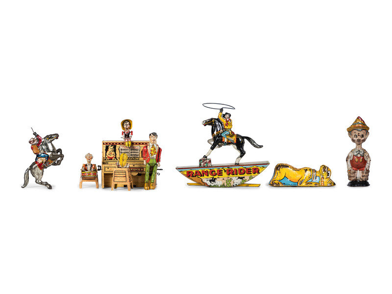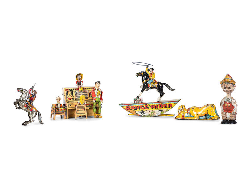 comprising a 'Range Rider,' 'Lone Ranger', 'Pluto,' and 'Pinocchio,' together with a Unique Art Manufacturing Co. 'Dogpatch 4' band.