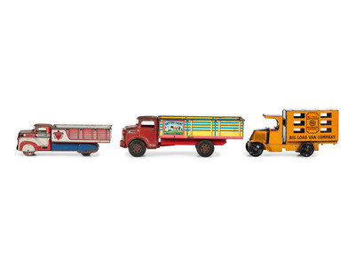 Three Marx Pressed Steel and Tin Truck Toys