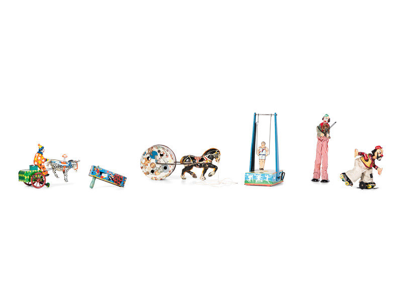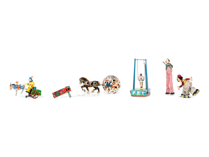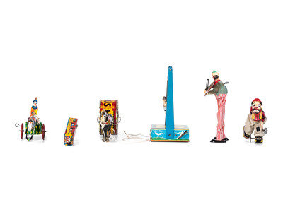 Six Tin Clown and Circus Toys