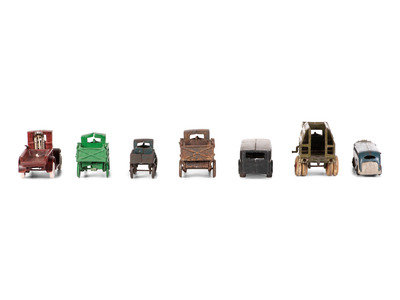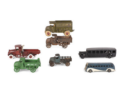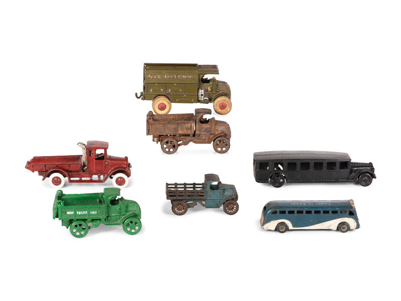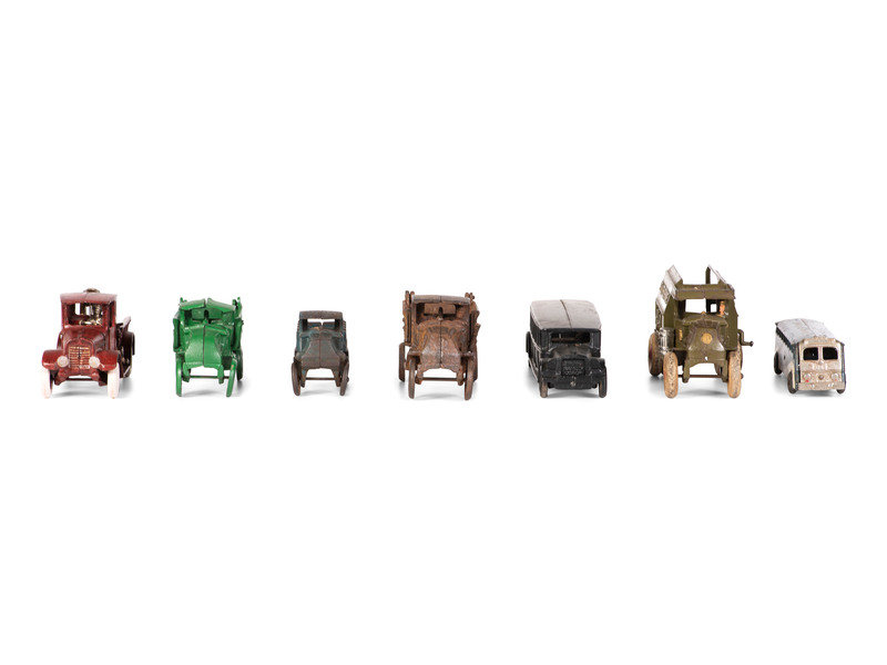 Seven Painted Cast Iron Toy Vehicles