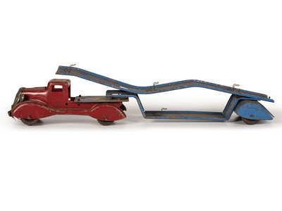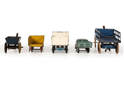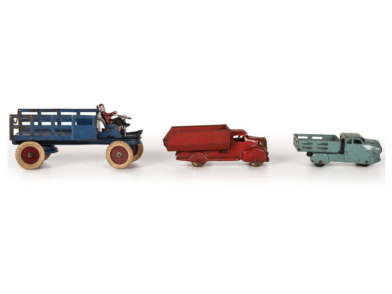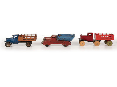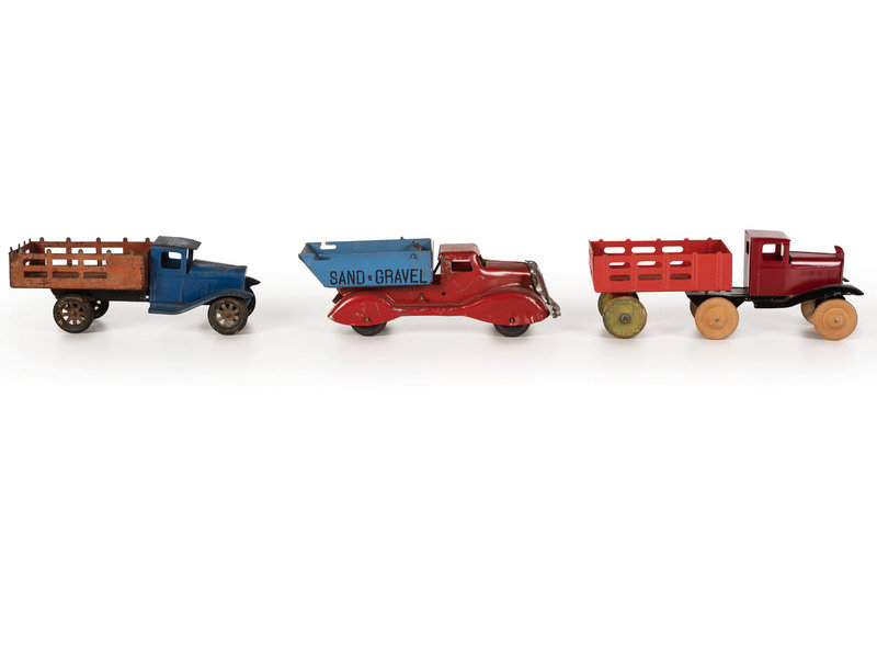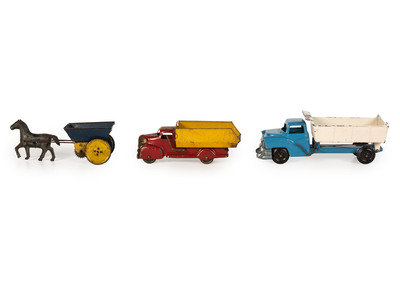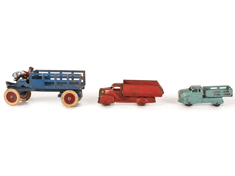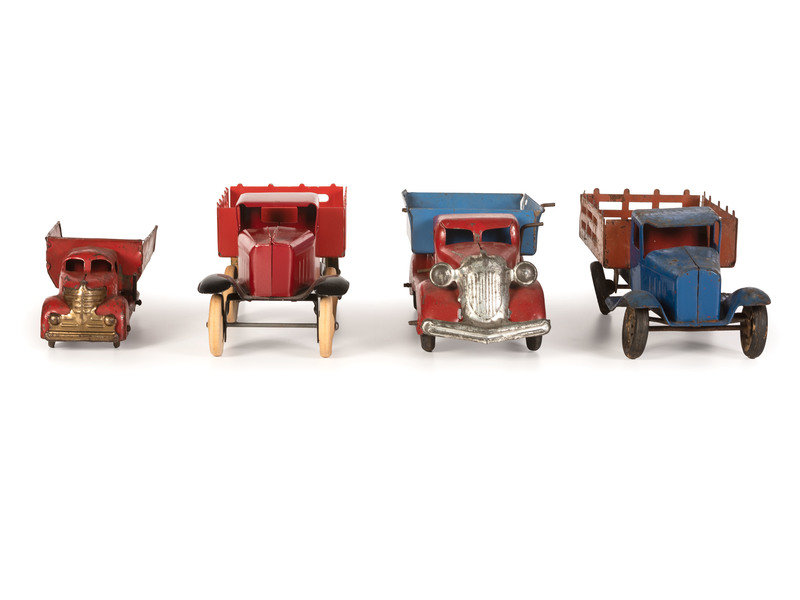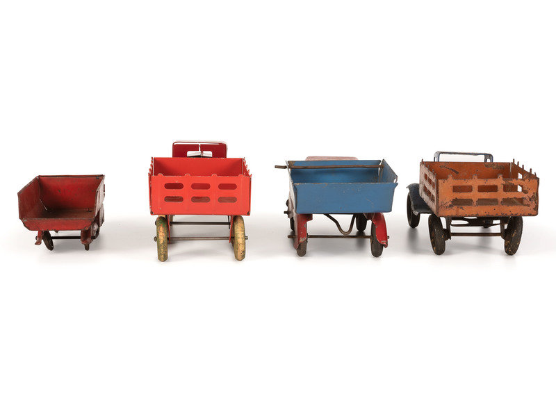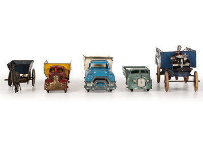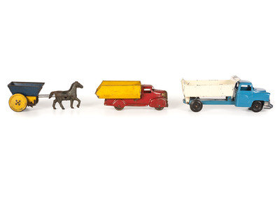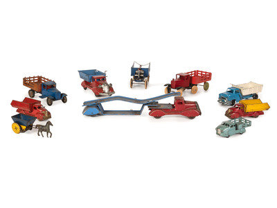 Ten Tin and Pressed Steel Toy Trucks and Wagons