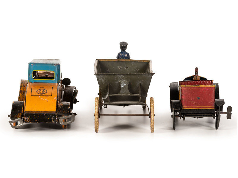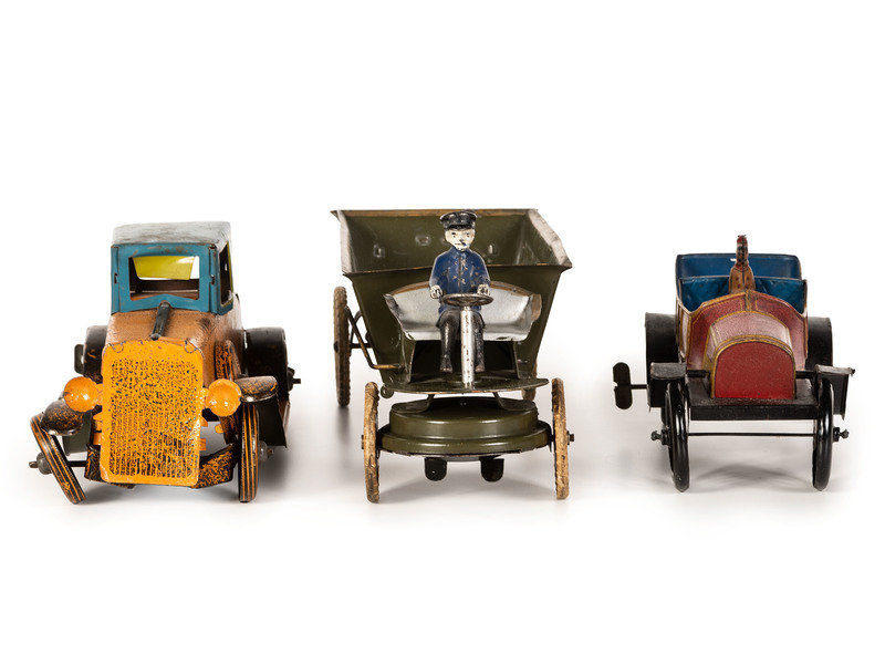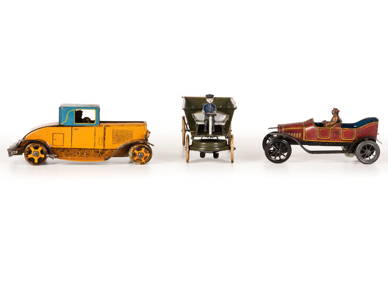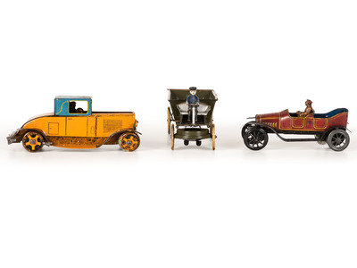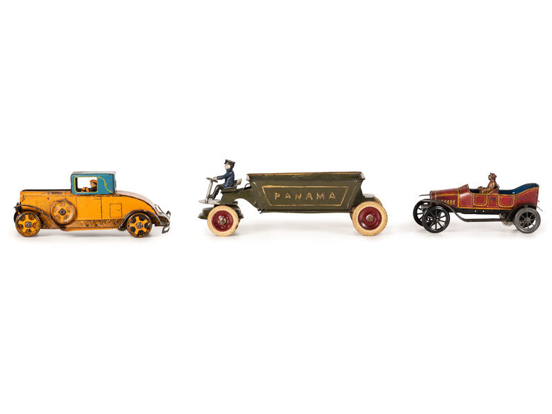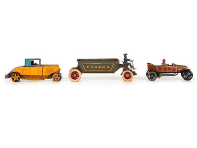 comprising a Marx 'Cadillac Roadster,' a Gunthermann open-top limousine, and a Wilkins 'Panama' earth truck.