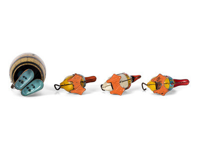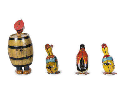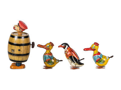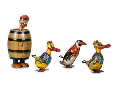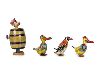 together with three Chein tin lithograph windup water fowl figures, comprising one penguin and two ducks.