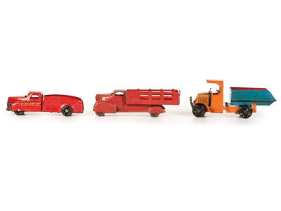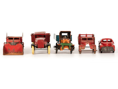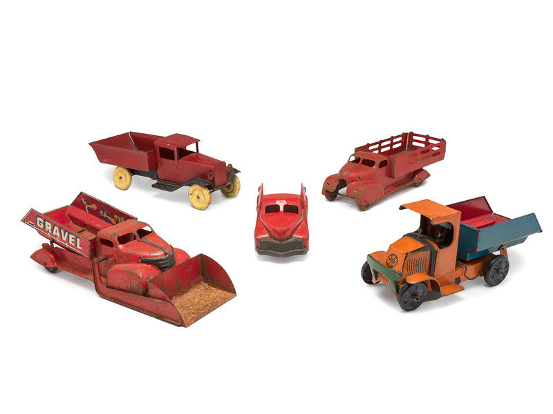 Five Tin and Pressed Steel Toy Trucks