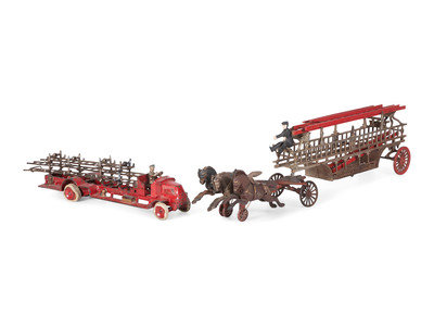 including an Arcade fire truck and a three-horse fire wagon.