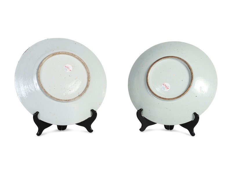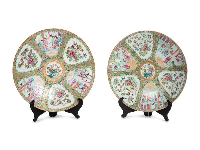 A Pair of Chinese Export Rose Medallion Porcelain Chargers