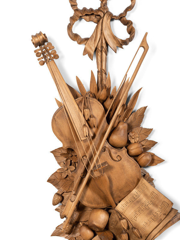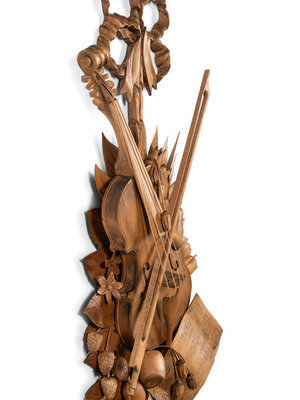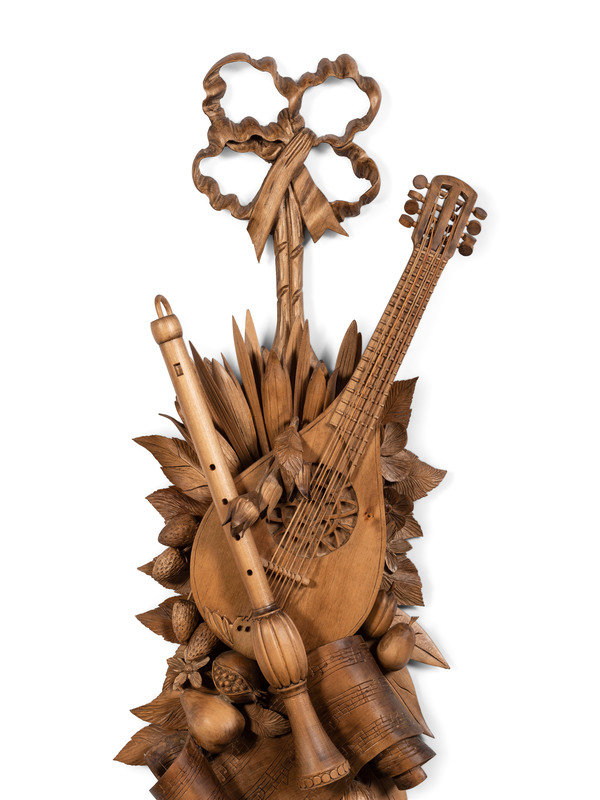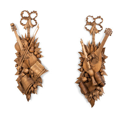 A Pair of Louis XV Style Carved Wood Musical Trophies