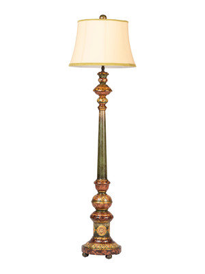 A Paint Decorated Wood Floor Lamp