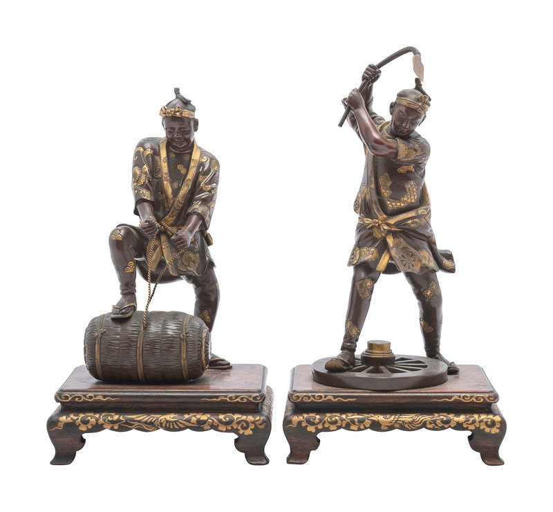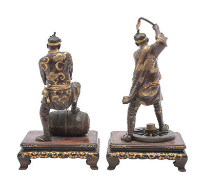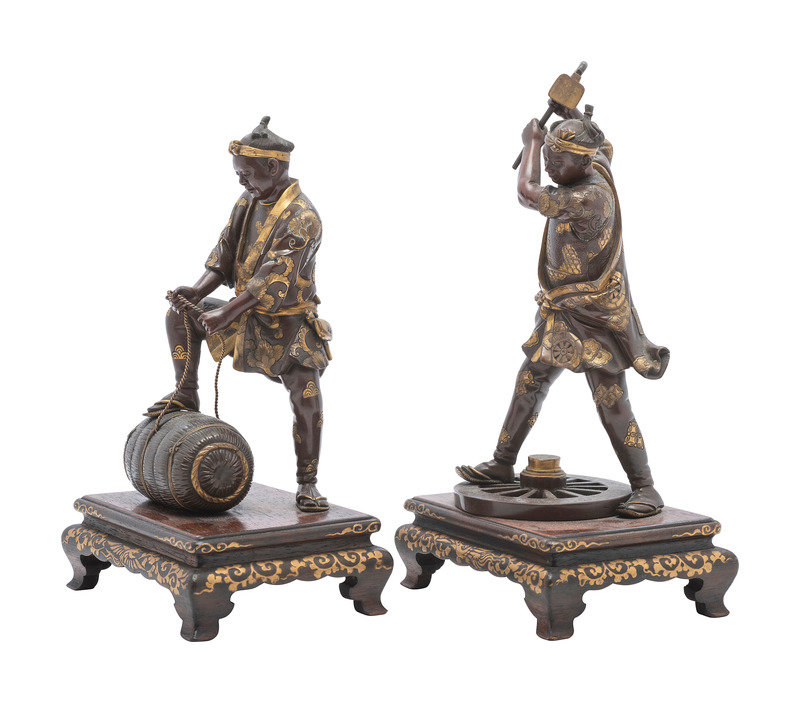 A Pair of Japanese Miyao Style Bronze Figures of Laborers