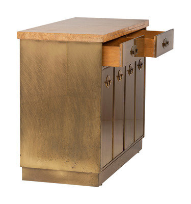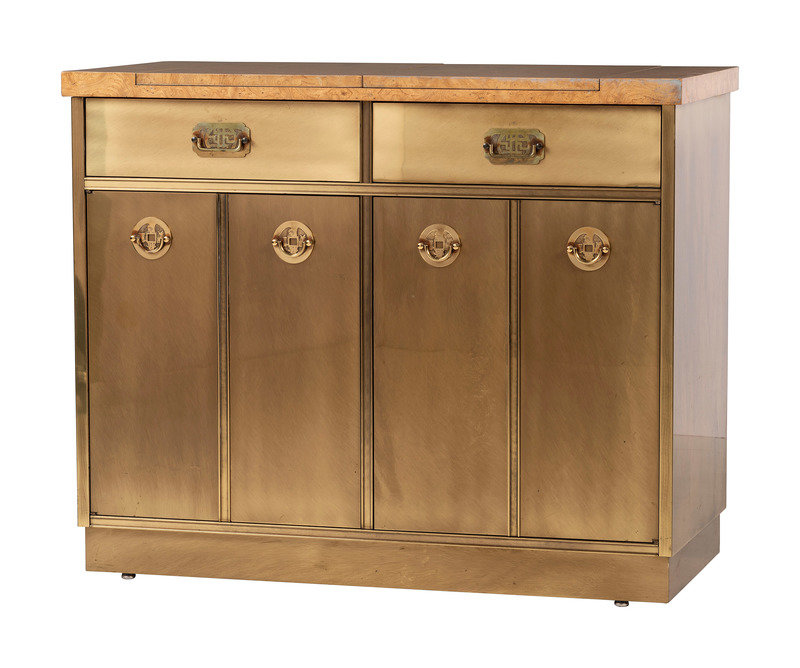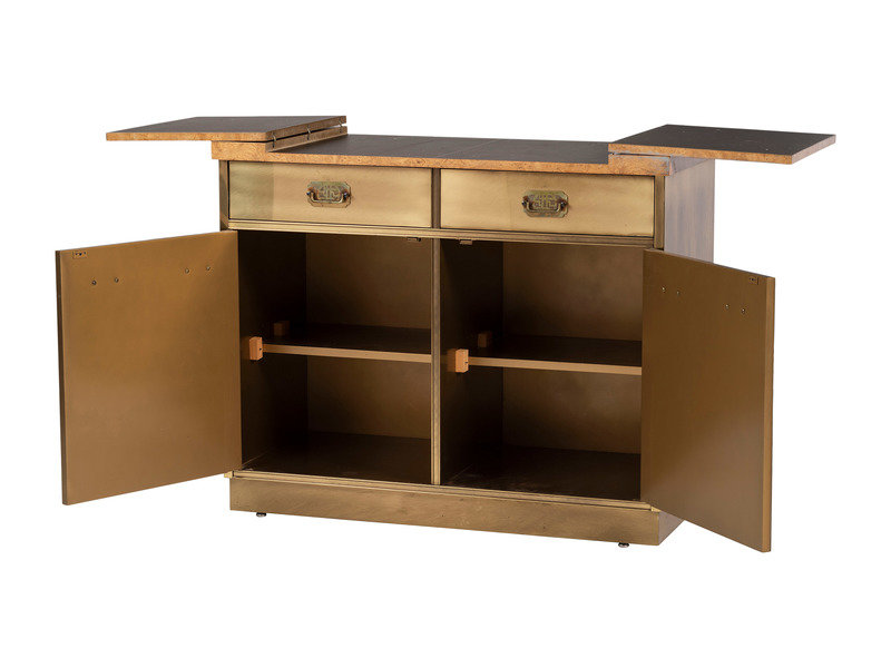 A Mastercraft Brass and Burlwood Bar Cabinet