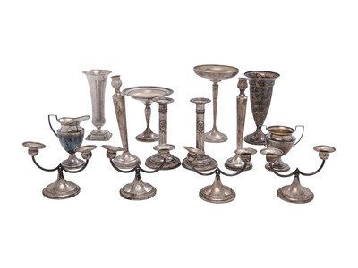 including four candlesticks, four candelabra, a creamer and sugar, two compotes and two vases.