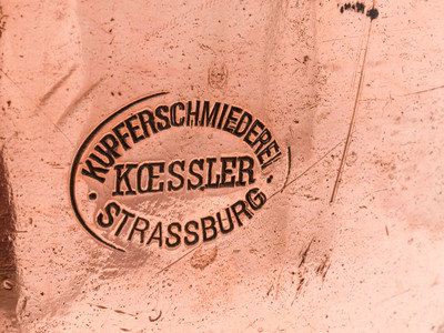 stamped on pot and cover KUPFERSCHMIEDEI KOESSLER STRASSBURG.