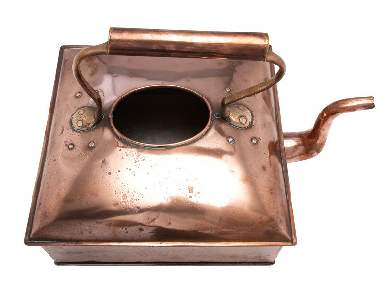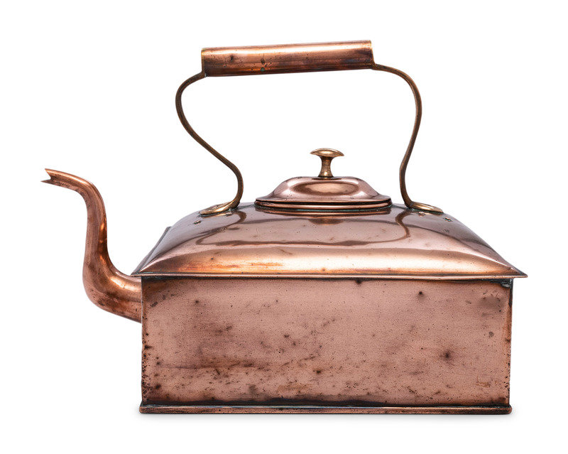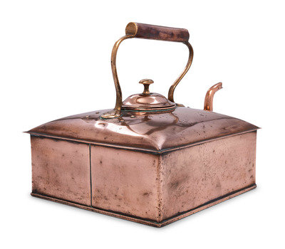 An English Square Copper and Brass Tea Kettle