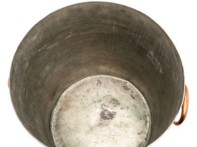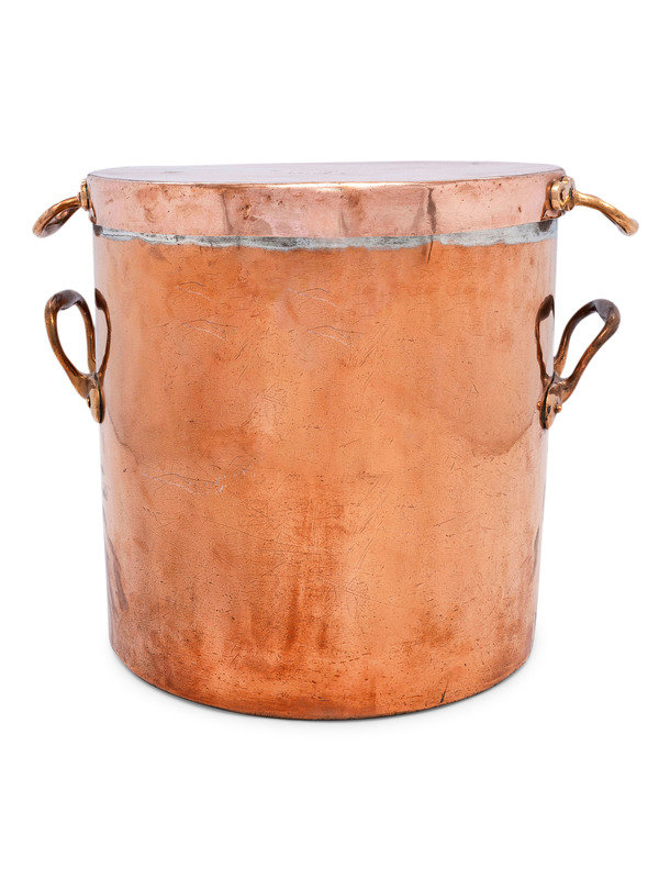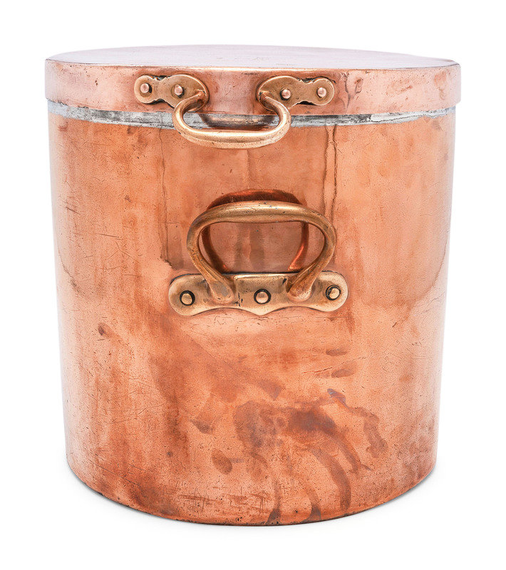 An English Copper Stock Pot with Cover and Brass Handles