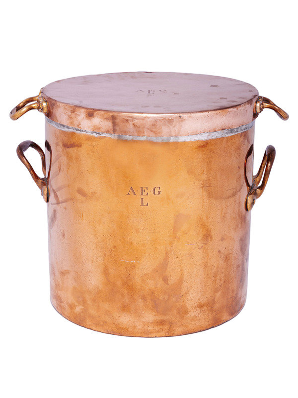 engraved initials AEG on both pot and cover.